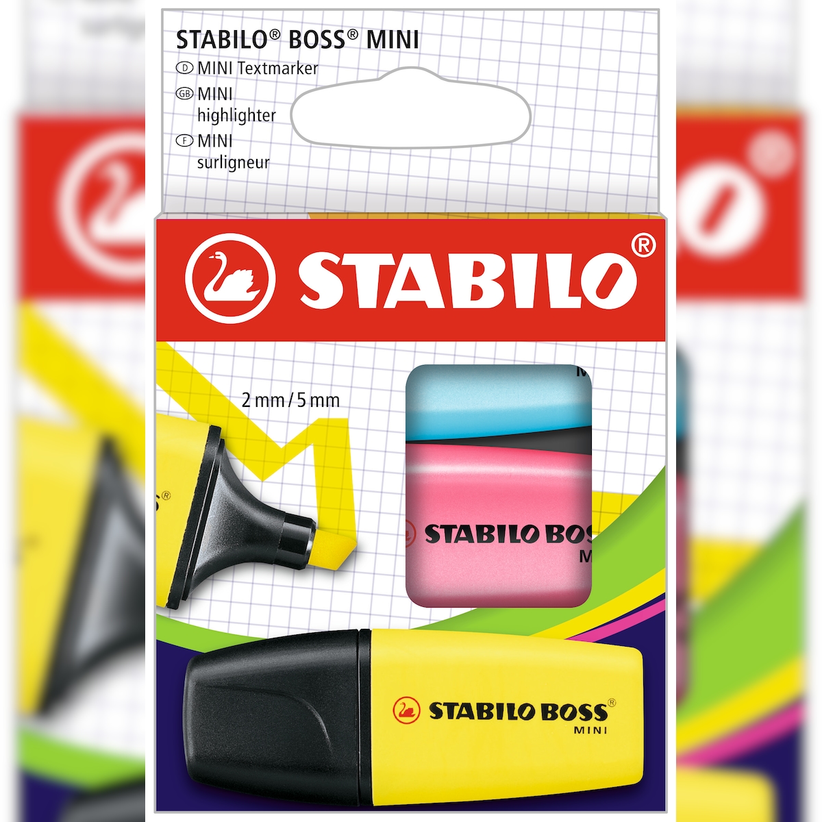 Textmarker - STABILO BOSS MINI - 3er Pack - gelb, blau, pink