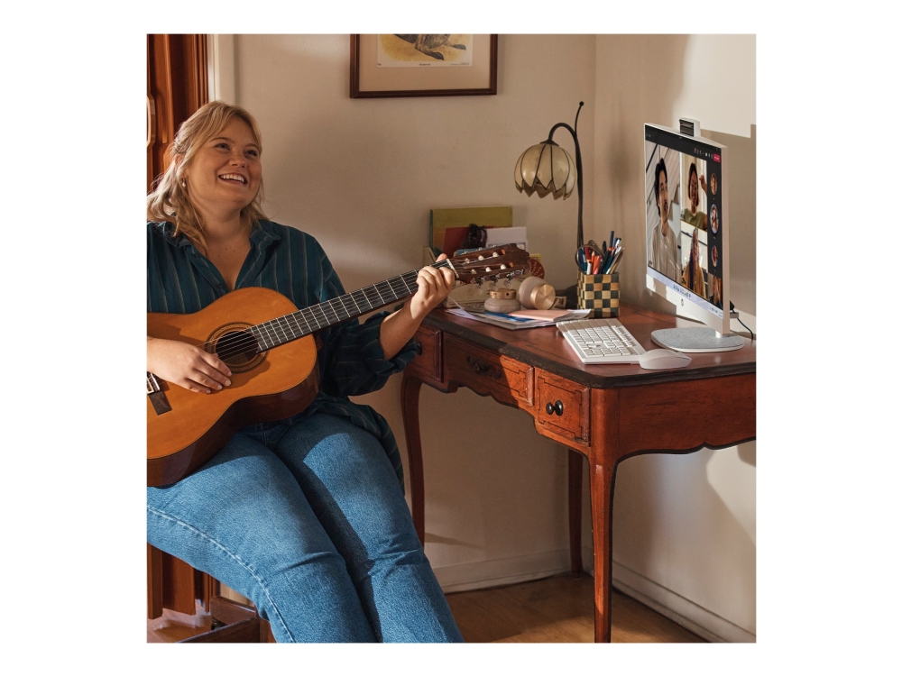HP 27-cr0106ng - Alt-i-ett Core i5 1335U / inntil 4.6 GHz - RAM 16 GB - SSD 512 GB - NVMe - Intel Iris Xe Graphics - Gigabit Ethernet, Bluetooth 5.3, IEEE 802.11ax (Wi-Fi 6) - Win 11 Home - monitor: LED 27 1920 x 1080 (Full HD) - tastatur: Tysk - skallhvit, teksturert finish