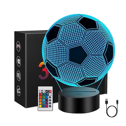 Fußball 3D-Nachtlichtlampe mit Fernbedienung Touch-Steuerungmehrfarbig Blinkmodi und Helligkeit angepasstusb Batteriebetriebene beste Geschenke für Sportliebhaber, Jungen, Mädchen, Kinder