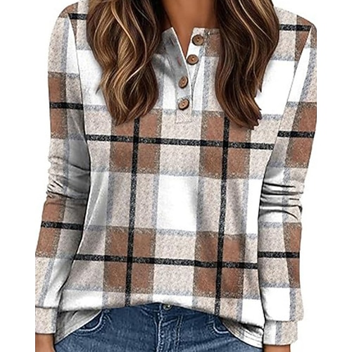 Per donna Top Eleganti Plaid Semplice Elegante Vintage Classico Manica Lunga Girocollo Top Regolari Lavoro Quotidiano Uscire Bottoni Nero Bianco Blu Albicocca Autunno Inverno