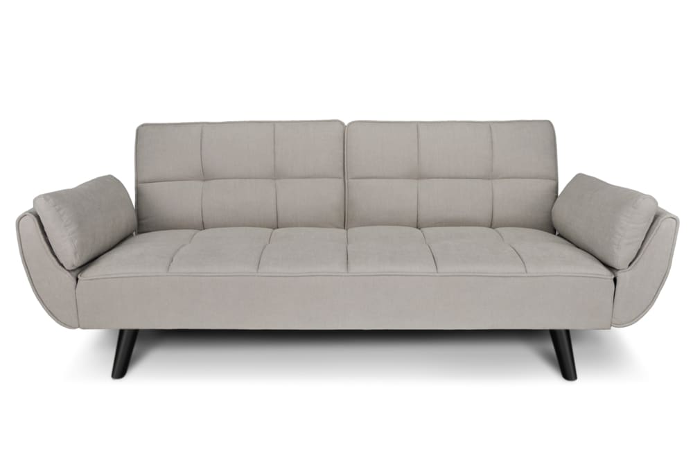 Divano letto clic clac in tessuto vellutato tortora piede nero
