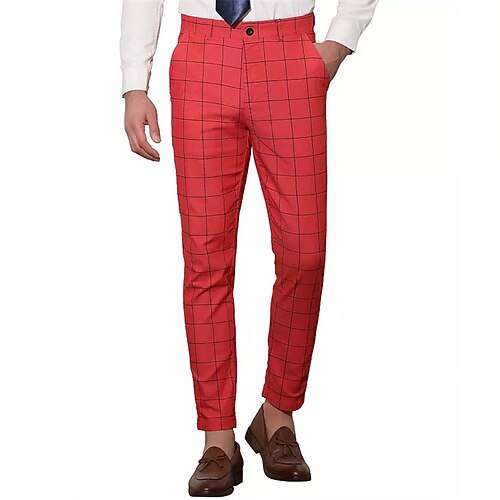 Per uomo Pantaloni Pantaloni Eleganti Chinos Tasca Bottoni Plaid Comodità Formale Feste Lavoro Moda Stile Classico Nero Vino Micro-elastico