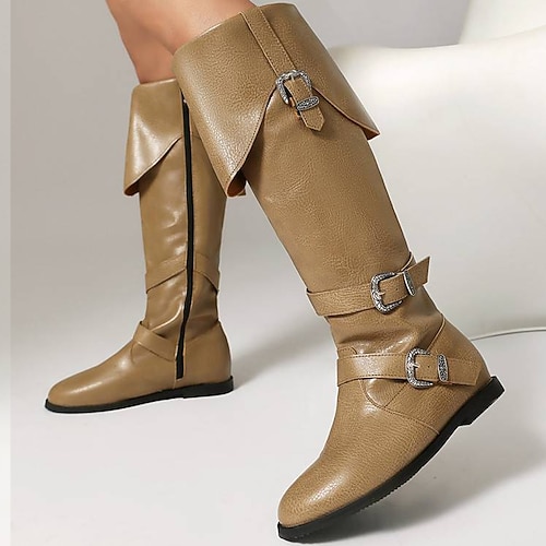 stivali alti da uomo in similpelle nera con eleganti dettagli con fibbia: perfetti per le feste di Natale e la moda invernale