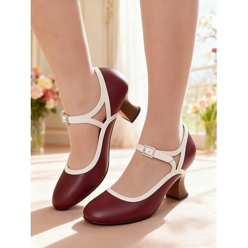 Per donna Tacchi Retrò Mary Jane Feste Quotidiano Strass Fibbia Tacco Cubano Punta Tonda Elegante Vintage Finta Pelle Fibbia Nero Giallo Rosa