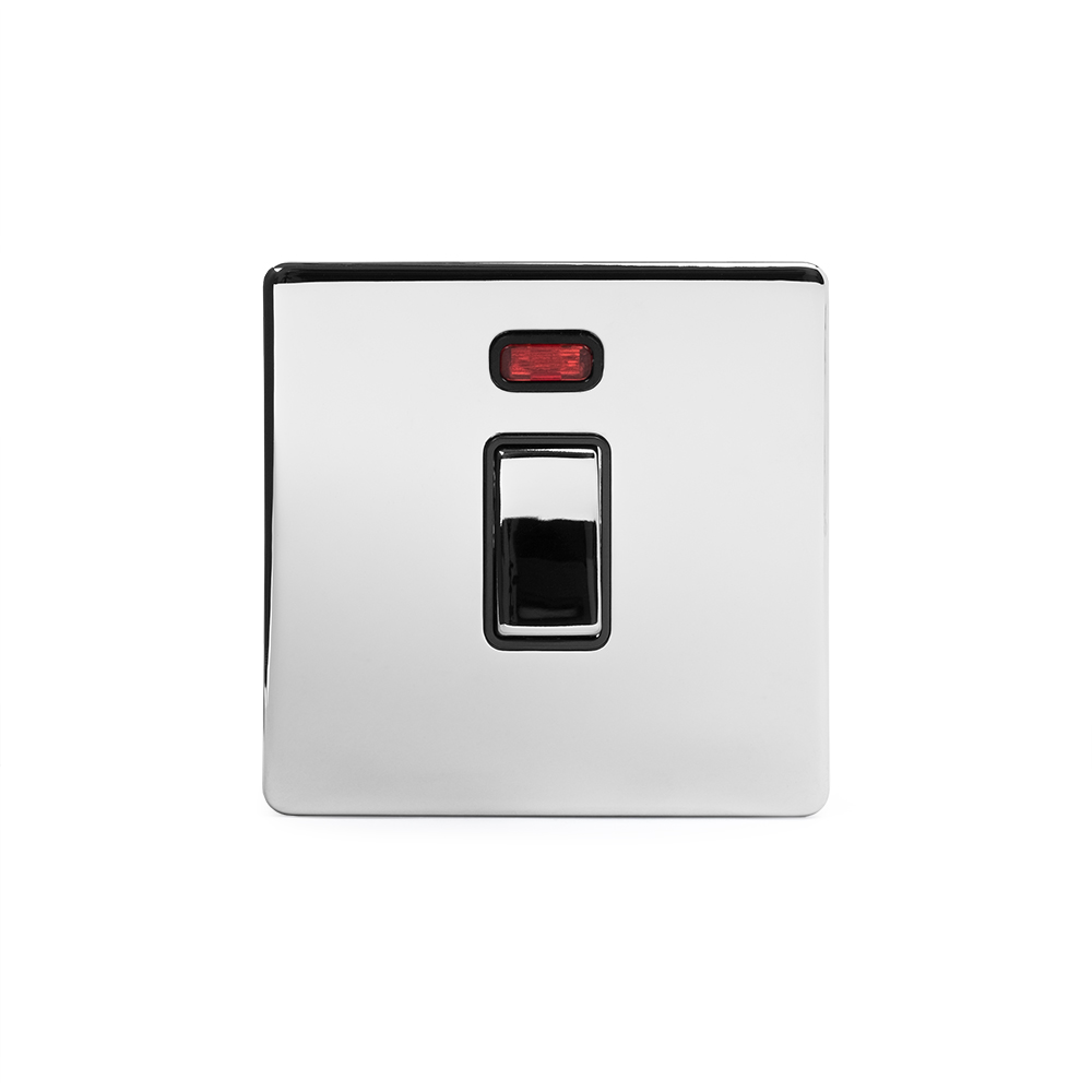 Soho Lighting Polished Chrome 20A 1 Gang Double Pole Switch With Neon Blk Ins Screwless