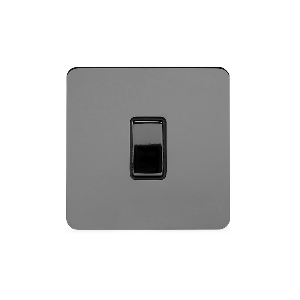 Soho Lighting Polished Chrome Flat Plate 20A 1 Gang Double Pole Switch Blk Ins Screwless