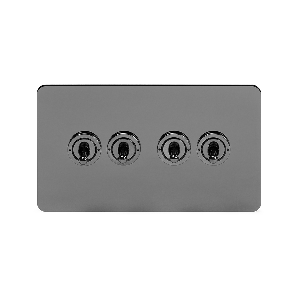 Soho Lighting Bronze with Brushed Brass 4 Gang Switch with 3 Dimmers (3x150W LED Dimmer 1x20A 2 Way Toggle) - Brushed Chrome