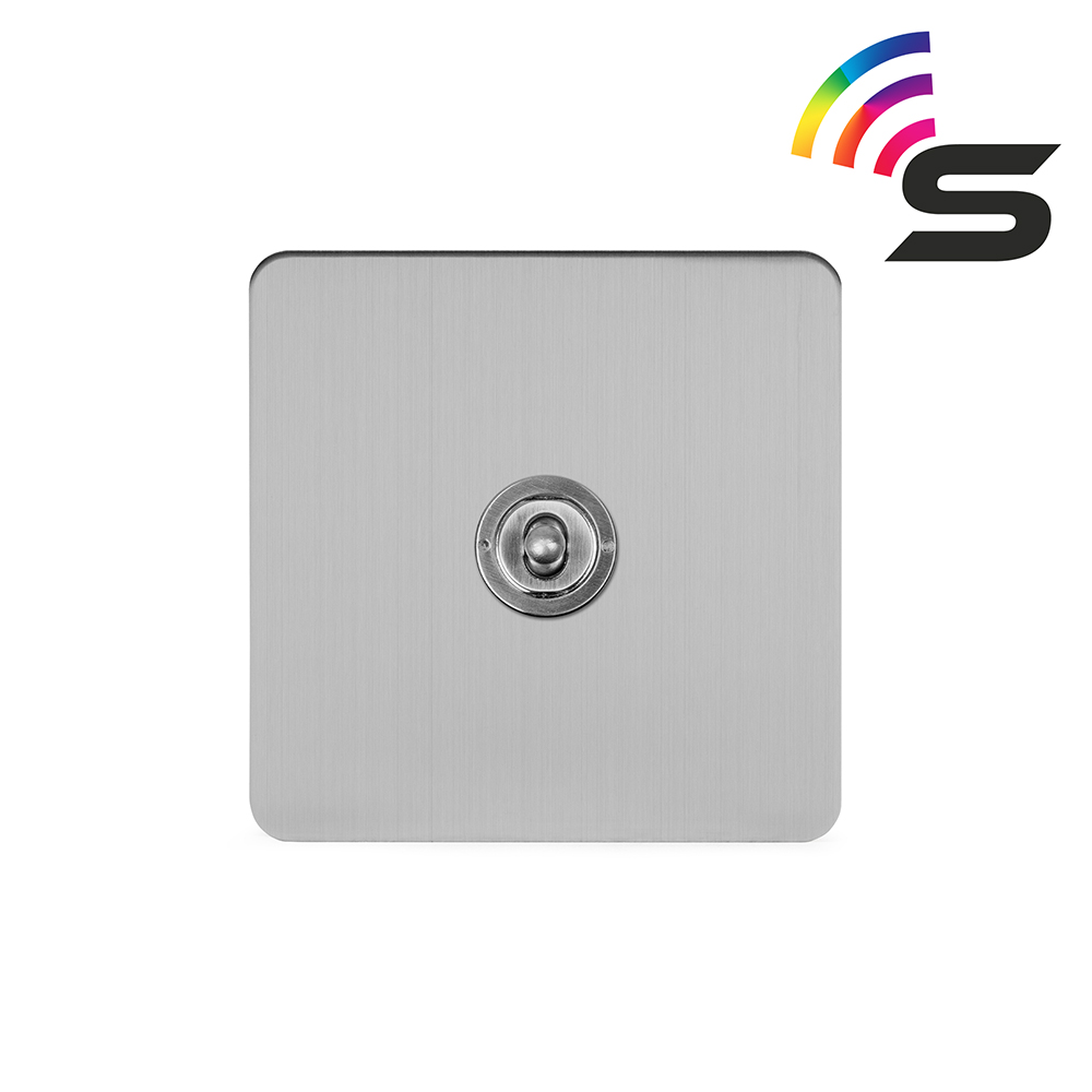 Soho Lighting Brushed Chrome Flat Plate 1 Gang 150W Zigbee Smart Toggle Switch