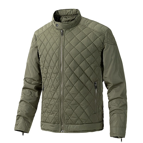 Men's Winter Coat Bomber Jacket Quilted Jacket Parka Pocket Polyster Vacation Daily Wear Date Regular Fashion Casual Comfortable Thermal Warm Fall Winter Solid / Plain Color Wine Black Brown Khaki
