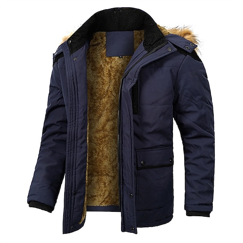 Herren Wintermantel Fleecejacke Parka Tasche Fleece Polyester Urlaub Alltagskleidung Date Regulär Mode Lässig Bequem Thermowarm Herbst Winter Einfarbig Schwarz Khaki Dunkelblau Pufferjacke