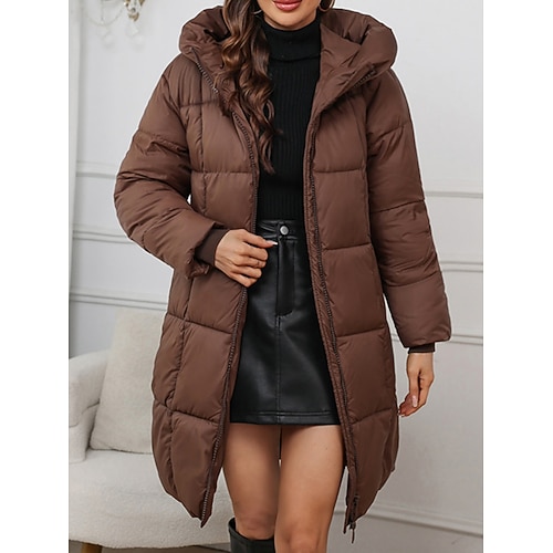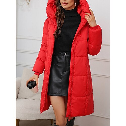 Women's Parka Comfortable Breathable Zipper Pocket Casual Plain Vacation Street Casual Daily Wear Zipper Long Hooded Regular Fit Long Sleeve Outerwear Black Red Khaki Spring Fall
