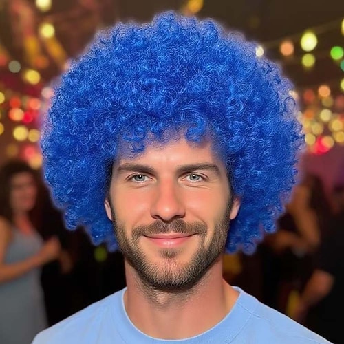Parrucca di Carnevale Rosa Nero Blu Riccio Afro Corto Parrucca sintetica da festival Martedì grasso Parata Capelli per costumi da cosplay per Da uomo