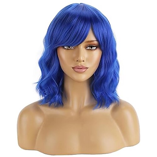 Parrucca di Carnevale Blu Riccio Corto Parrucca sintetica da festival Martedì grasso Parata Capelli per costumi da cosplay per Da donna