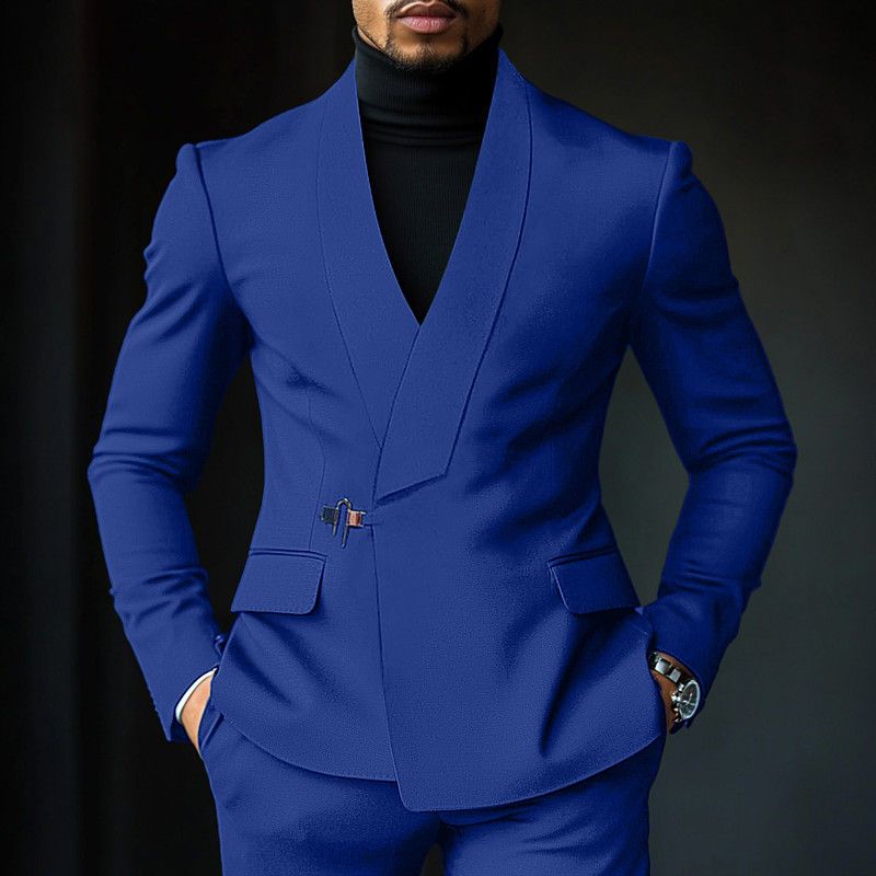 Men's Wedding Winter Wedding Suits Blue Black Solid Colored Tailored Fit 2 Piece Single Breasted One-button