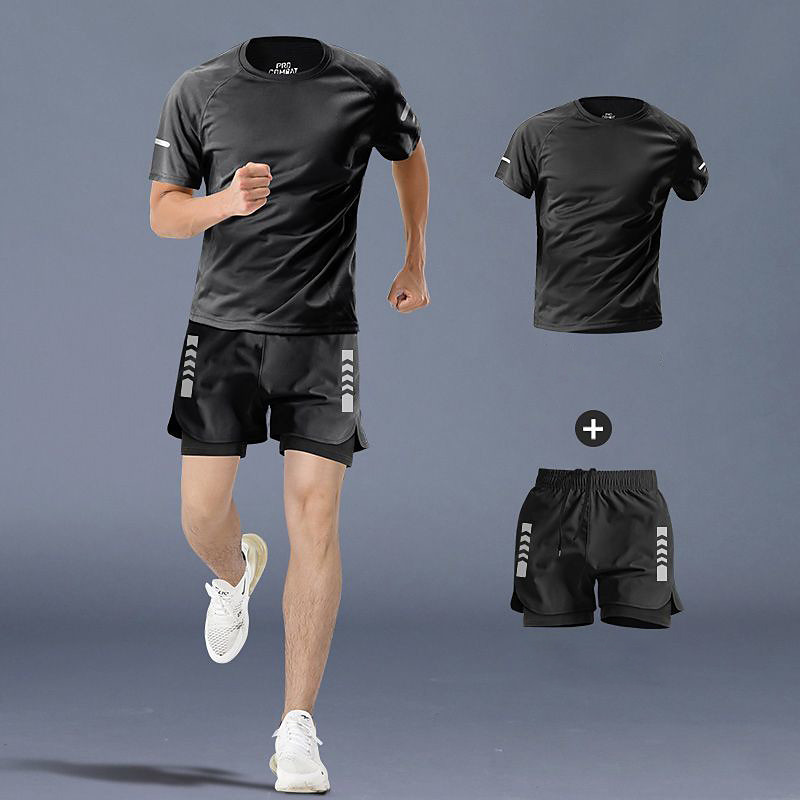 Men's Workout Suits 2 Piece Sports Set Solid Colored Clothing Suit Summer Dark Grey Gray Black Basketball Running Yoga High Waist Quick Dry Short Sleeve Sport Activewear Micro-elastic Regular Fit