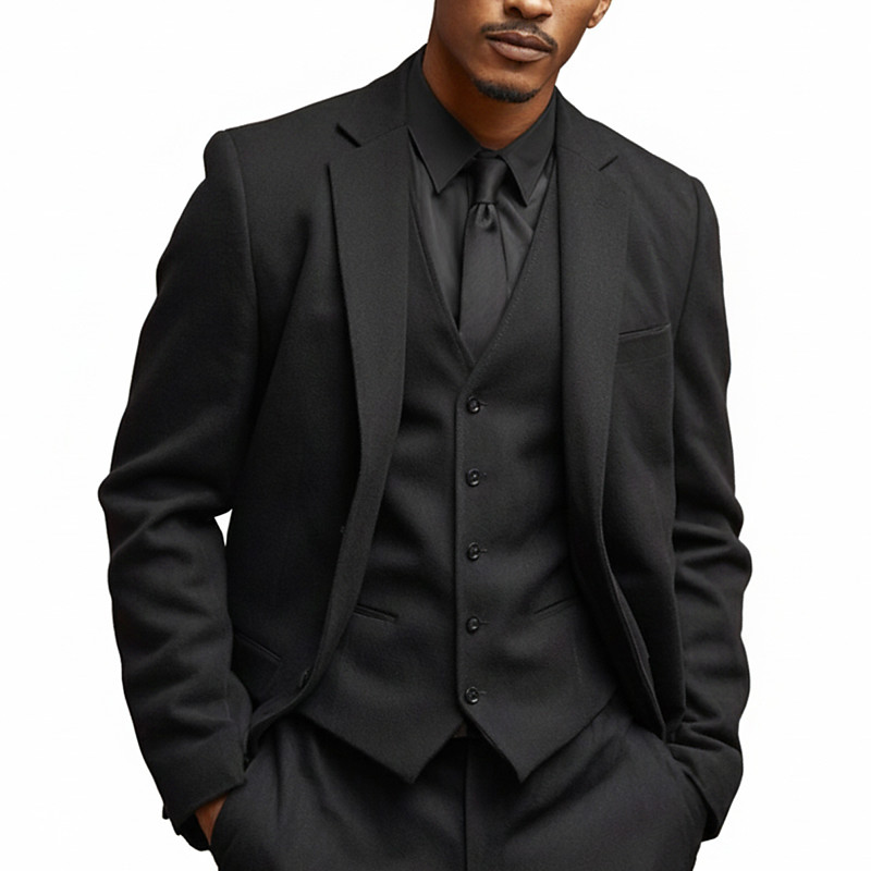 Men's Wedding Winter Wedding Suits Notch Lapel Black Burgundy Solid Colored Standard Fit 3 Piece Single Breasted Two-buttons