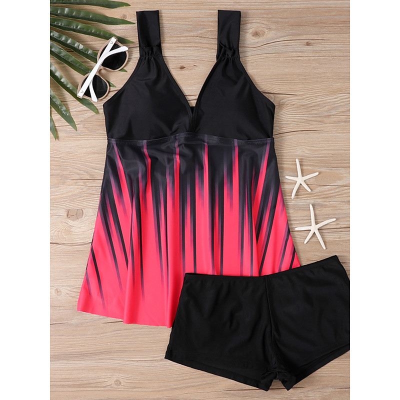 Women's Tankini 2 Piece Swimsuit Shorts Tummy Control High Waist Slim Backless Vacation Beach Wear Ombre Color Block V Neck Sleeveless Bathing Suits
