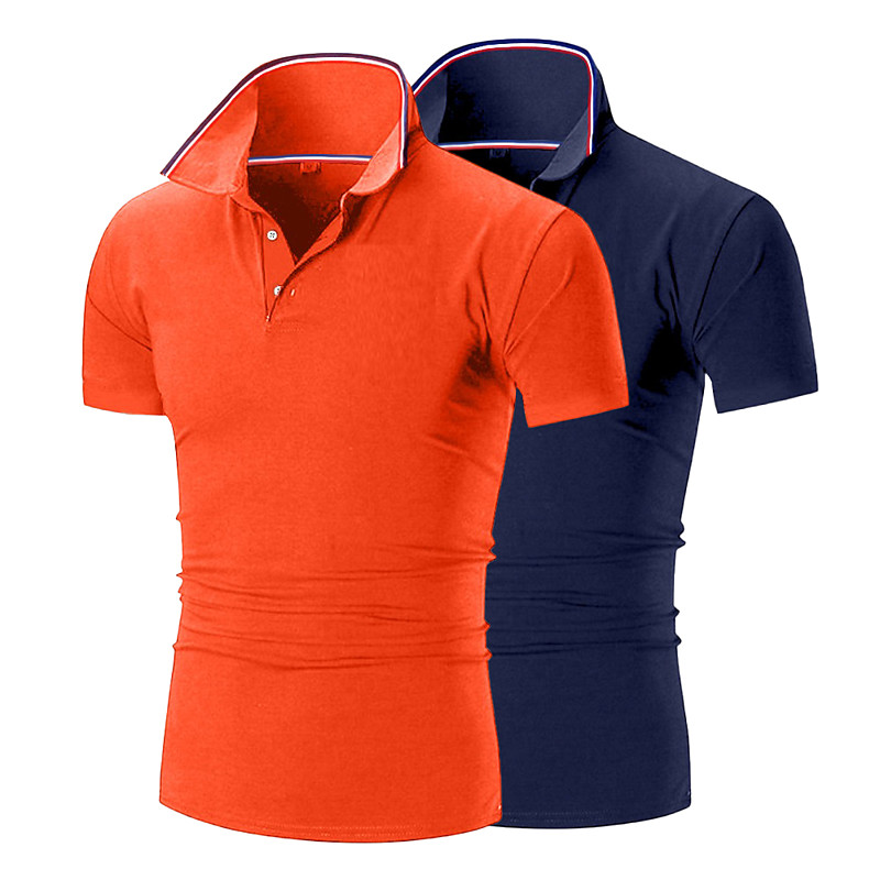 2 Piece Men's Golf Shirt Pique Polo Shirt Business Casual Ribbed Polo Collar Short Sleeve Fashion Basic Solid Color 2 Pcs Buttons Summer Spring Fall All Seasons Golf Shirt