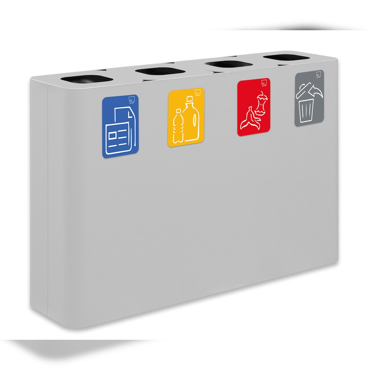 Stil Casa PURE Abfallsammelsystem, lackierter Stahl, 120x30xh. 80 cm, 240 Liter mit vier Fächern zu je 60 Litern, weiß.