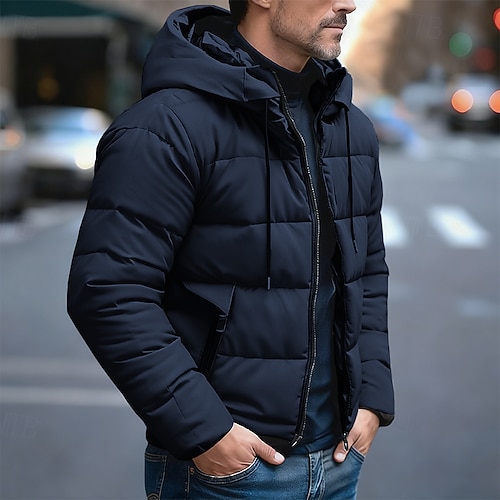 Per uomo Giacca da esterno Cappotto invernale Piumino Parka Sportivo Caldo Autunno inverno Tinta unita / tinta unita Con cappuccio Corto Nero Bianco Cachi Verde militare Giacca