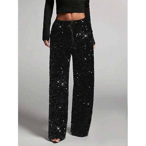 Per donna Pantaloni Pantaloni casual Dritto Moda Streetwear Essenziale Lunghezza intera Vita Alta Semplice Paillettes Tasca Elastico in vita Confortevole Micro-elastico Quotidiano Vacanza Feste Nero