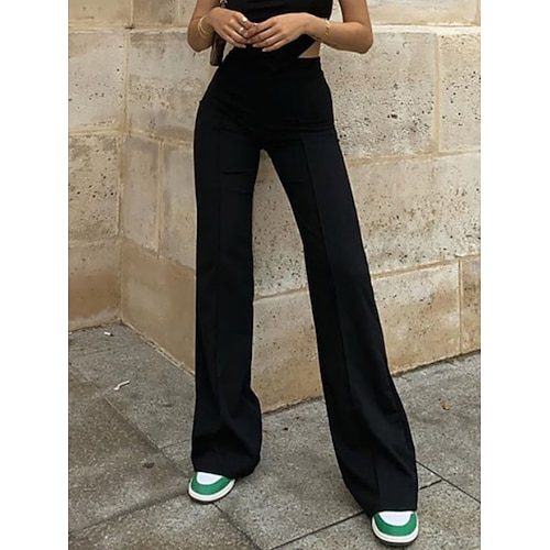 Per donna Gamba larga Pantaloni Pantaloni a Zampa Pantaloni casual Vacanza Moda Streetwear Lungo Vita Alta Semplice Elastico in vita Confortevole Micro-elastico Quotidiano Vacanza Streetwear Nero
