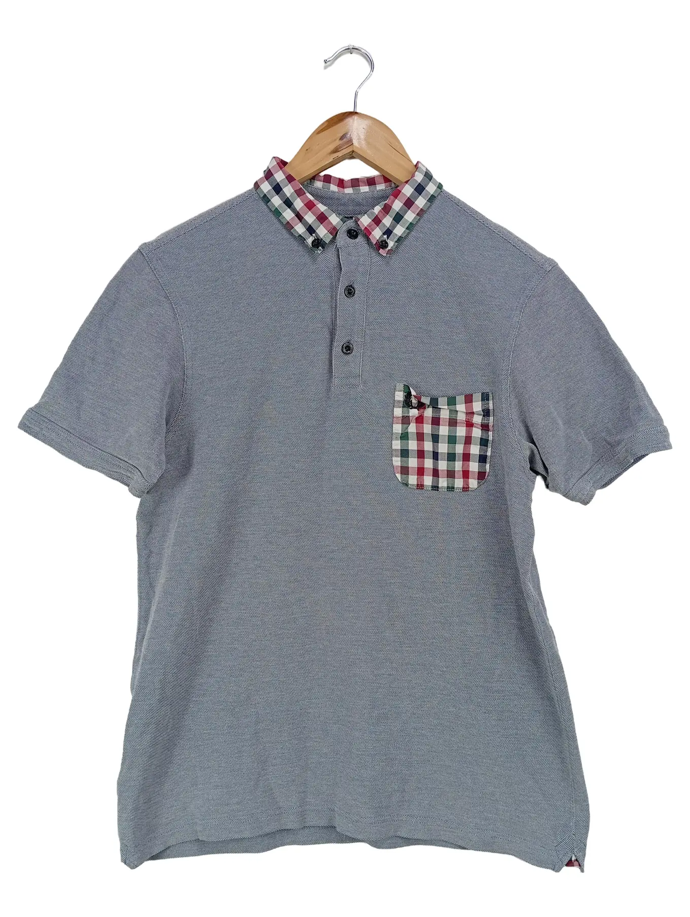 FRED PERRY Poloshirt Herren M Grau Kariert Slim Fit Baumwolle