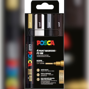 POSCA PC-5M, Sort, Gull, Sølv, Hvit, Flerfarget, 4 farger, Medium, Vann-basert blekk, Projektil spiss