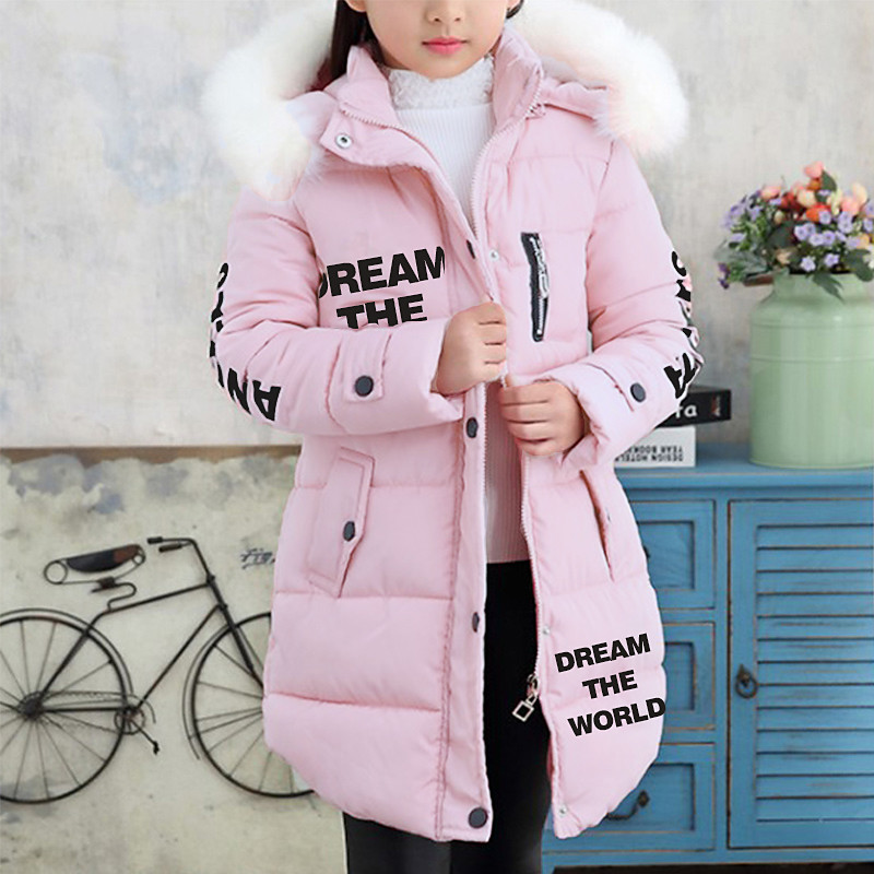 Girls' 3D Kids Puffer Jacket Letter Trench Coat Down Coat Puffer Jacket Long Sleeve Winter Basic Kids 4-12 Years School Street Daily