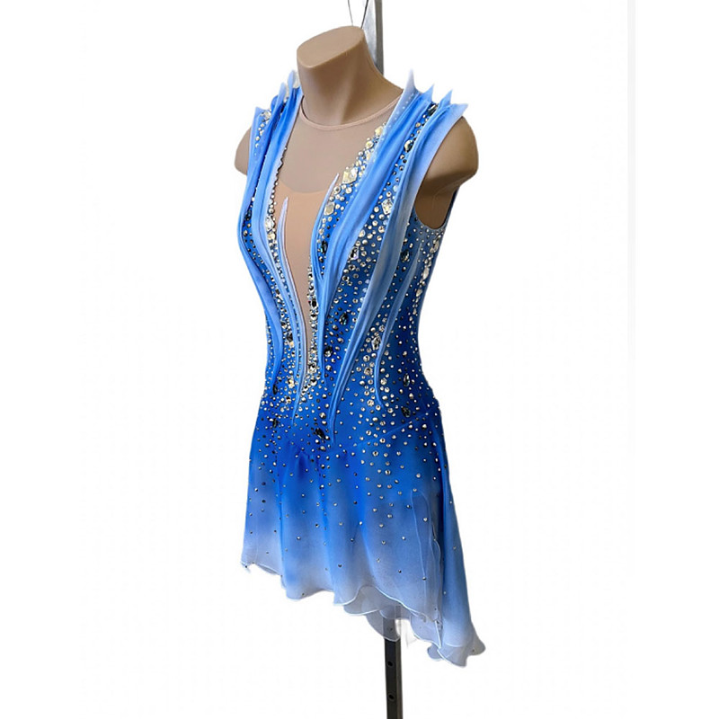 Figure Skating Costumes For Adults And Children Customized With Colored Diamonds Blue Spandex Mesh Grading Performance Costumes Competition Training Gradient Rhinestone Dresses Performance Costum