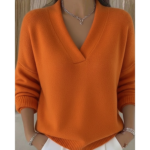 Per donna Felpa Maglione Streetwear Casual Colore Puro Scollo a V Lavorato a maglia Manica Lunga Top Regolari Maglia Quotidiano Ferie Uscire Rosa Verde militare Autunno Inverno