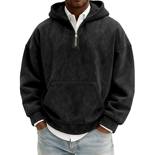 Per uomo Felpa con cappuccio Maglione Felpa con cappuccio e zip corta Nero Verde chiaro Rosa Verde militare Blu marino Con Cappuccio Semplice Cerniera Sport Outdoor Casuale Quotidiano Vintage
