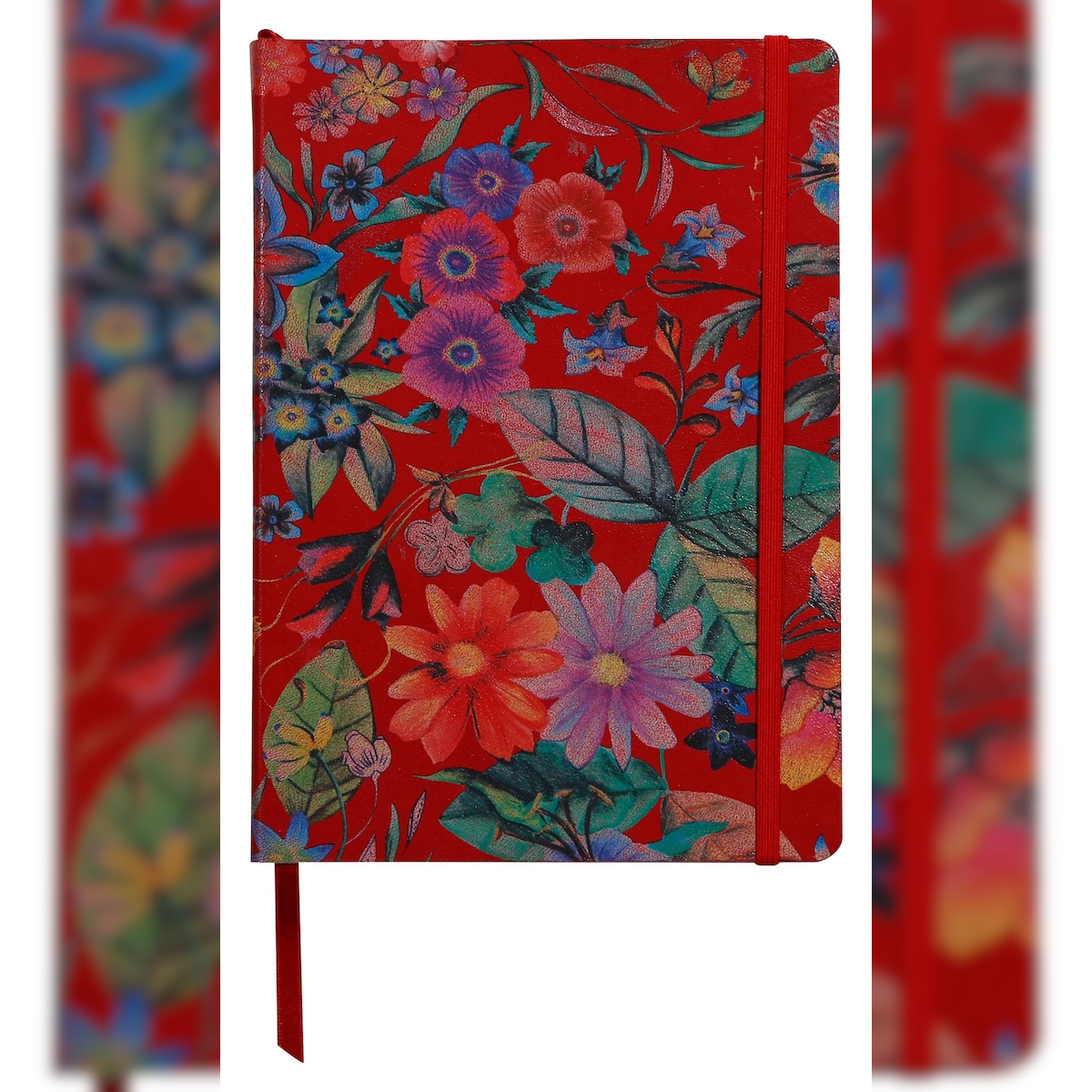 Clairefontaine 4x Céleste, Notizbuch A5 mit festem Einband aus Leder, 72 Blatt 90g liniert, Roter Garten - 400125C