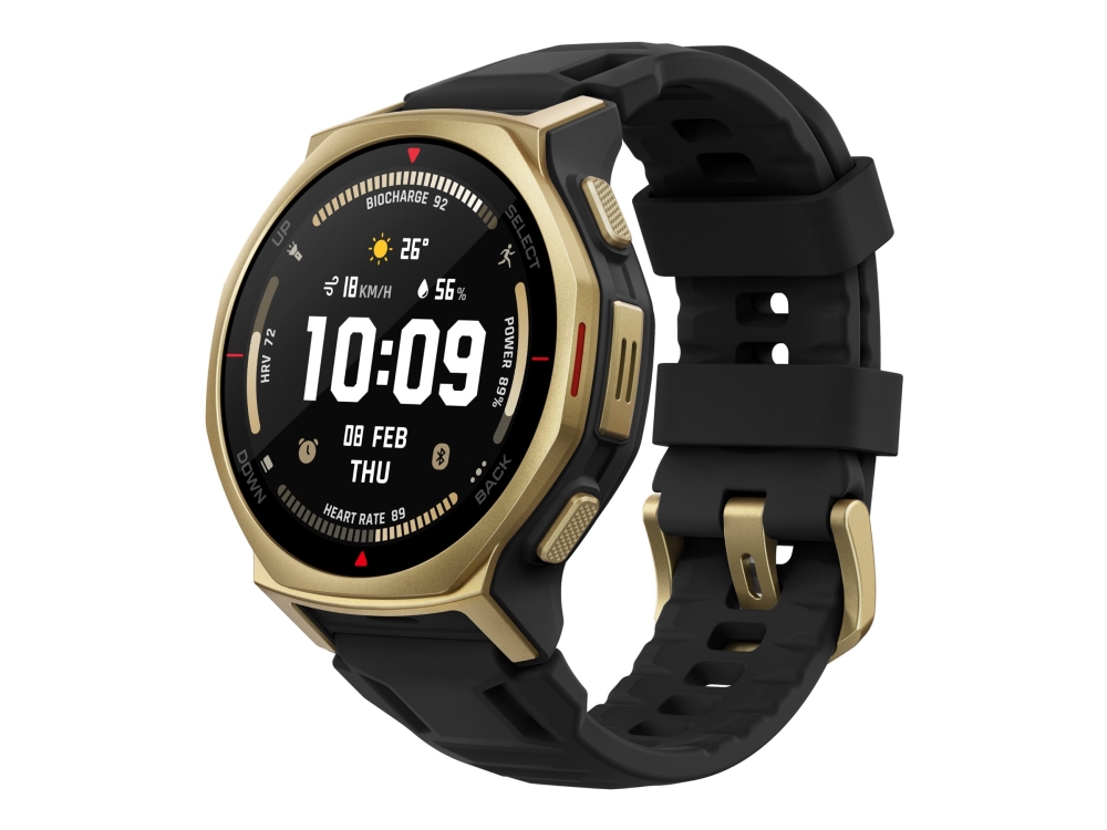 Amazfit T-Rex 3 Pro - 44 mm - Ja smart ur med rem - silikone - håndledsstørrelse: 140-205 mm - display 1.32 - Bluetooth, Wi-Fi, NFC - 46.8 g - sort guld