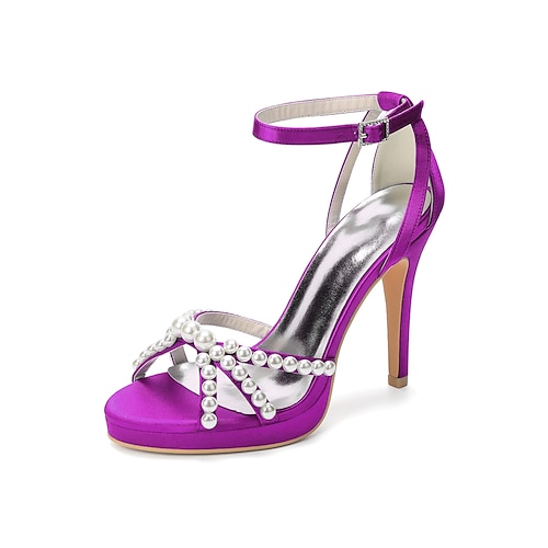 sandali da donna con tacco alto e cinturino alla caviglia in perle argentate, eleganti scarpe da sposa per matrimoni in città
