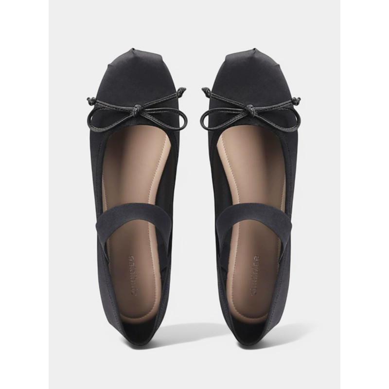 Women's Elegant Satin Ballet Flats – Soft Square Toe Mary Jane Shoes with Bow Detail, Comfortable Slip-On for Casual Formal Occasions