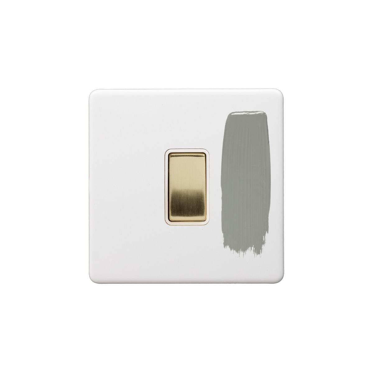 Soho Lighting Primed Paintable 1 Gang Light Switch 2 Way 10A with Brushed Brass Switch with White Insert - Size: 86mm x 86mm x 4.5mm