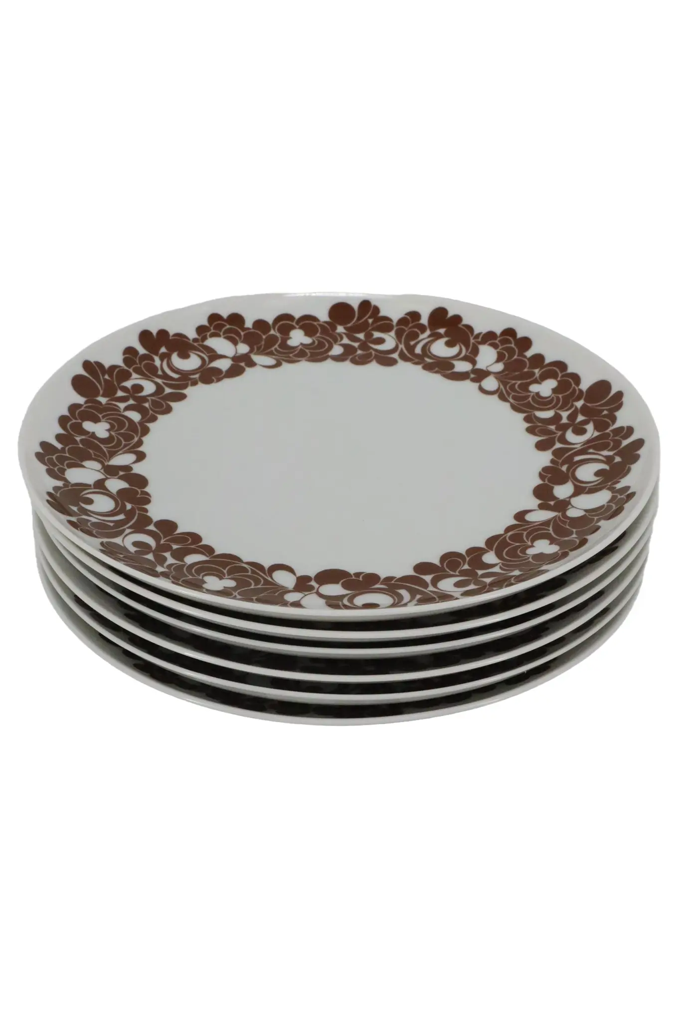 ROSENTHAL Kuchenteller 20 cm braun weiß Blumenmuster 6 Teile