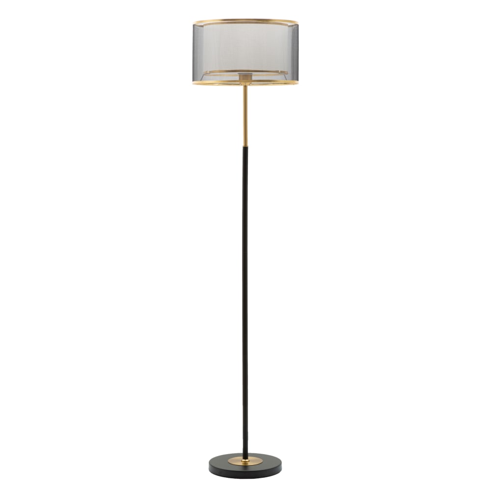 Lampada da terra ad albero con 3 paralumi in metallo e vetro nero