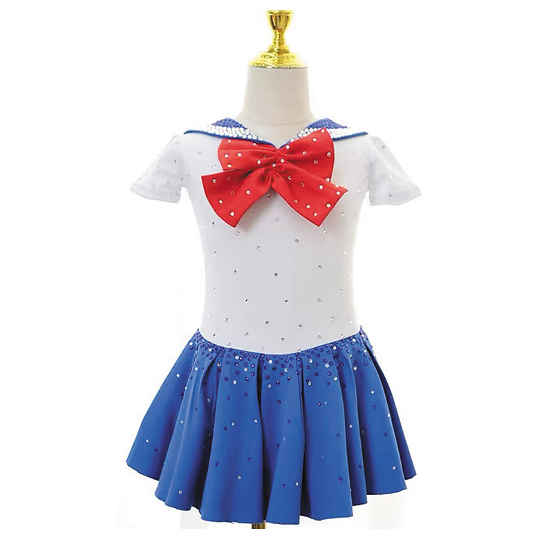 Eiskunstlaufkleid Damen Mädchen Eislaufen Kleid Blau Patchwork Netzstoff Spandex Dehnbar Training Übung Professionell Eiskunstlaufkleidung Thermowarm Kristall / Strass Langarm Eislaufen Eiskundstlauf