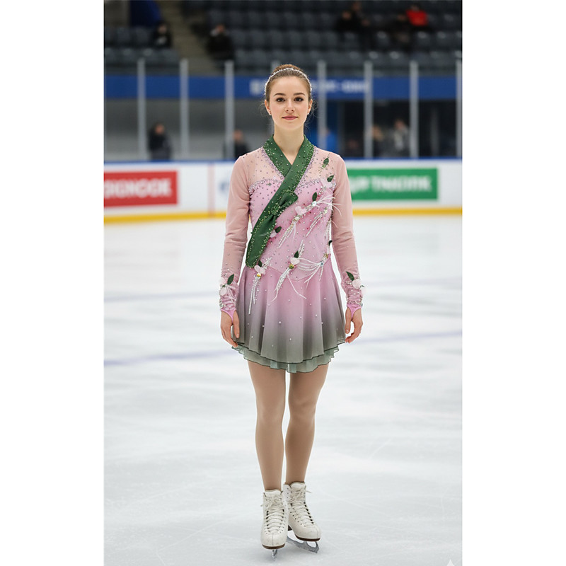 Figure Skating Dress Women's Ice Skating Skirt Dress Green Thumbhole Open Back Spandex High Elasticity Professional Competition Skating Wear Thermal Warm Classic Crystal / Rhinestone Long Sleeve Ice