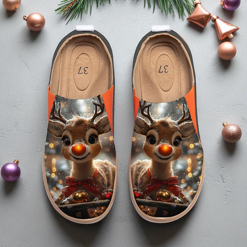 Women's Wide Toe Reindeer Canvas Travel Shoes – Cute Christmas Walking Shoes, Perfect for Holiday Travel and Winter Streetwear