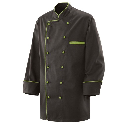 Exner 207 - Kochjacke schwarz langarm mit Paspel in verschiedenen Farben : lemon green 65% Polyester 35%Baumwolle 220 g/m² 3XL