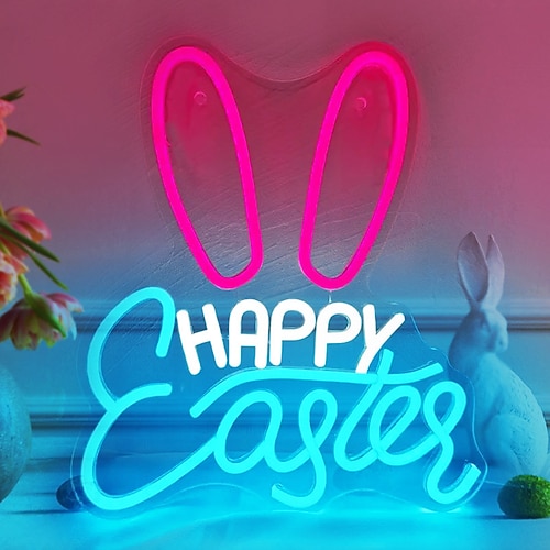Decorazioni al neon con coniglietto di Pasqua, luci al neon colorate, dimmerabili, alimentate tramite USB, per interni, soggiorno, camera da letto, feste, decorazioni murali, regali per le feste