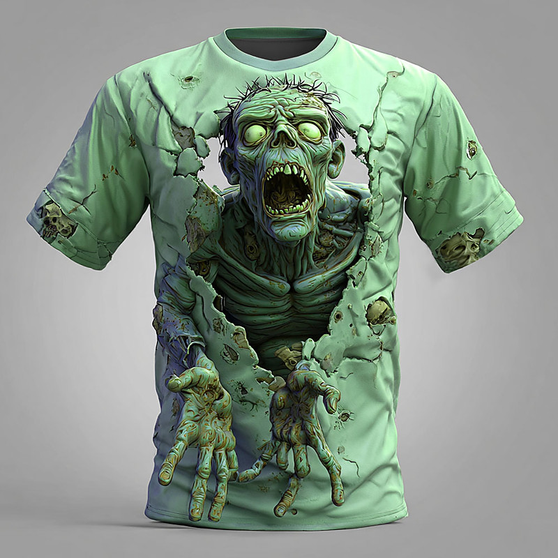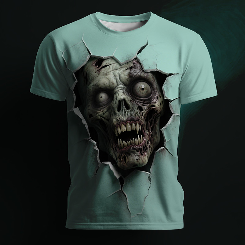 Halloween Men's Optical Illusion Zombies 3D T Shirt Short Sleeve T shirt 3D Print Crew Neck Shirt Exaggerated Designer Horror Party Street Holiday Green 1# Green 2# Summer Spring All Seasons Clothing