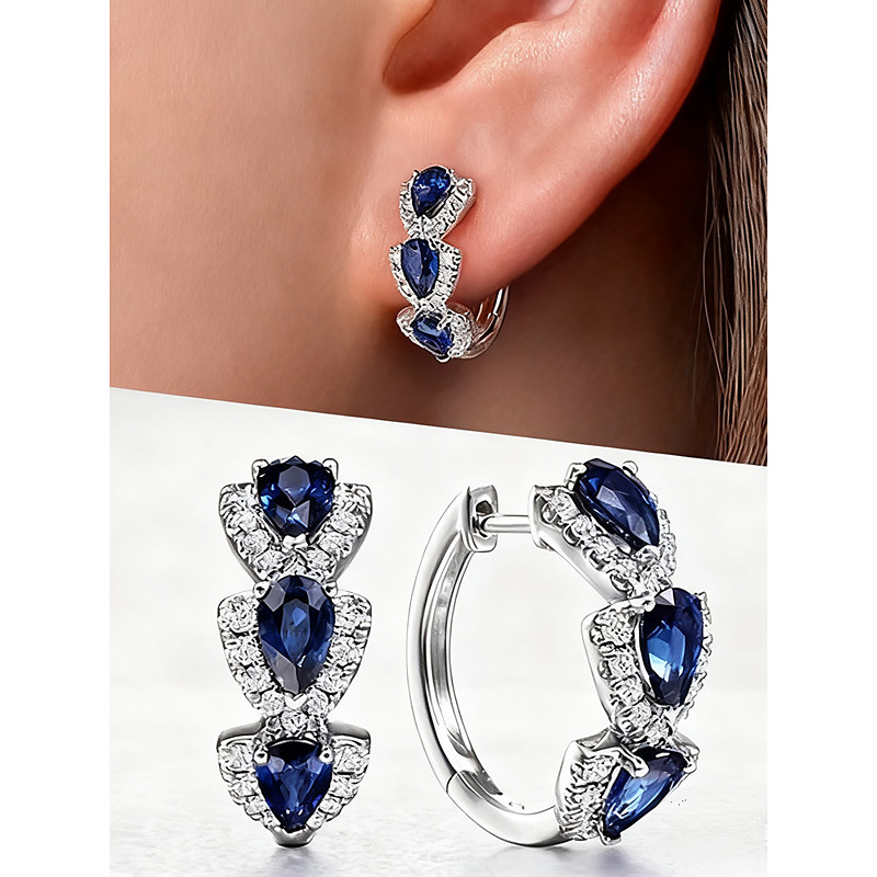 Diamant L'eternel Womens 9ct White Gold Diamond and Sparkling Shades of Blue Sapphire Hoop Earrings - One Size