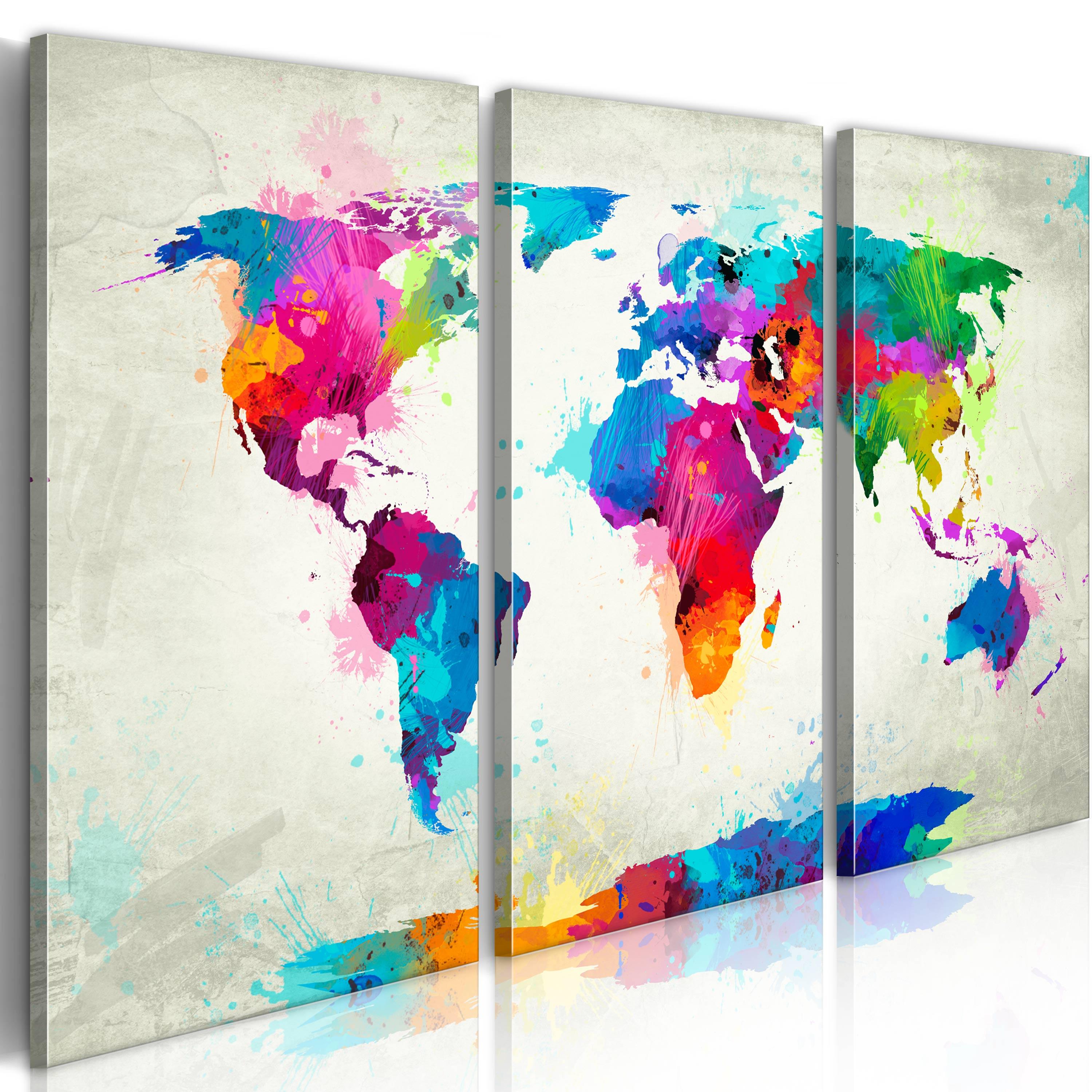 Billede - World Map: An Explosion of Colors - 60 x 40 cm - På italiensk lærred