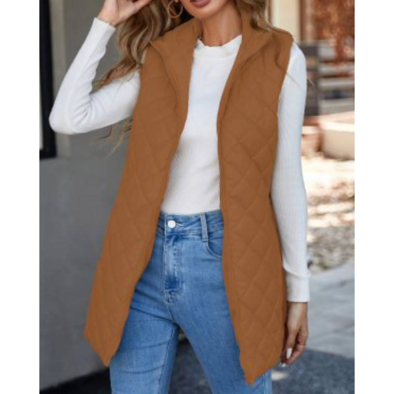 Women's Puffer Jacket Quilted Jacket Casual Jacket Waterproof Comfortable Zipper Pocket Casual Plain Vacation Street Casual Daily Wear Zipper Regular Long Turndown Regular Fit Sleeveless Outerwear