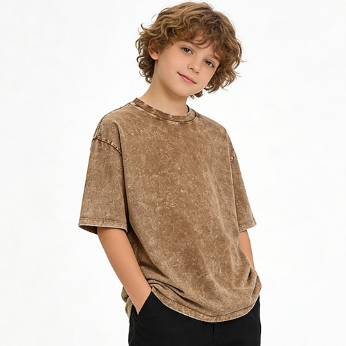 Bambini Ragazzi Maglietta Tee Tinta unica Manica Corta Top bambini All'aperto Moda Cool Estate Nero Dai 4 anni in su