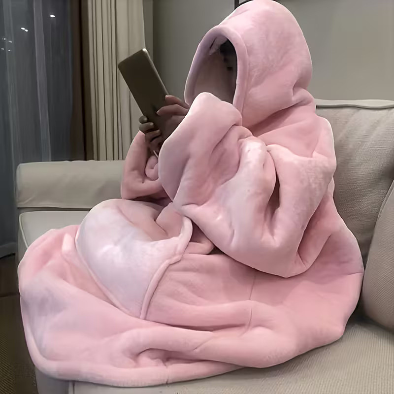 Double-Sided Hooded Blanket Pajamas - Oversized Comfort Blanket with Kangaroo Pockets Machine Washable Christmas/Valentine's Day/New Year Gift Suitable for Office Use